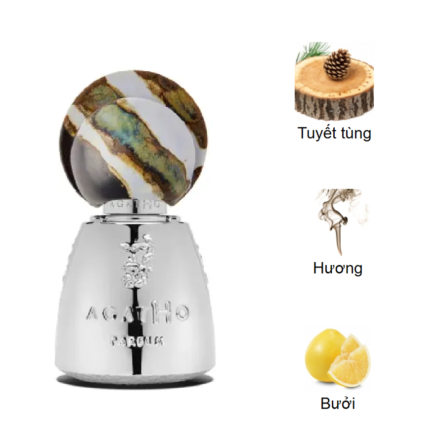Fauno Agatho Parfum gây ấn tượng với thiết kế như một tác phẩm nghệ thuật trừu tượng đầy mê hoặc. Thân chai ánh bạc sang trọng, bên trên chạm khắc logo thương hiệu Agatho Parfum nổi bật, mang đến cảm giác quyền lực và bí ẩn.