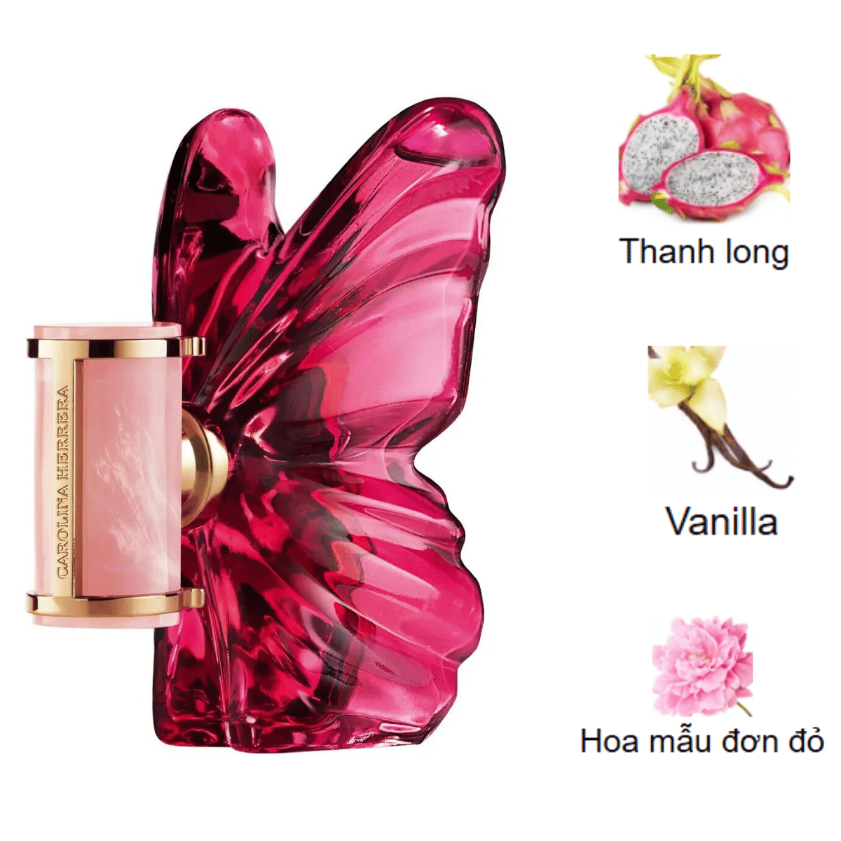 Carolina Herrera La Bomba Eau De Parfum mở màn với hương thanh long mát lạnh mọng nước. Nốt hương đầu tạo nên một bản giao hưởng trái cây tươi mát, khiến bạn ngay lập tức bị cuốn hút. Khi lớp hương đầu tan dần, hương giữa bắt đầu hé lộ với sự quyến rũ của mẫu đơn đỏ và hoa sứ. Những nốt hương hòa quyện tạo nên một bản giao hưởng hoa cỏ nồng nàn, mềm mại, lôi cuốn. Cuối cùng, khi hương hoa dịu xuống, lớp nền vanilla và hoắc hương xuất hiện. Nốt hương ôm trọn làn da bằng sự ấm áp, quyến rũ đầy cuốn hút. Vani mang đến sự ngọt ngào đầy mê hoặc, trong khi hoắc hương lại thêm chiều sâu bí ẩn. Tất cả gợi cảm giác gần gũi, thân mật và khó quên.