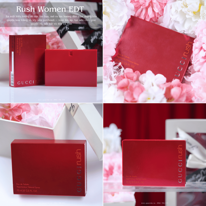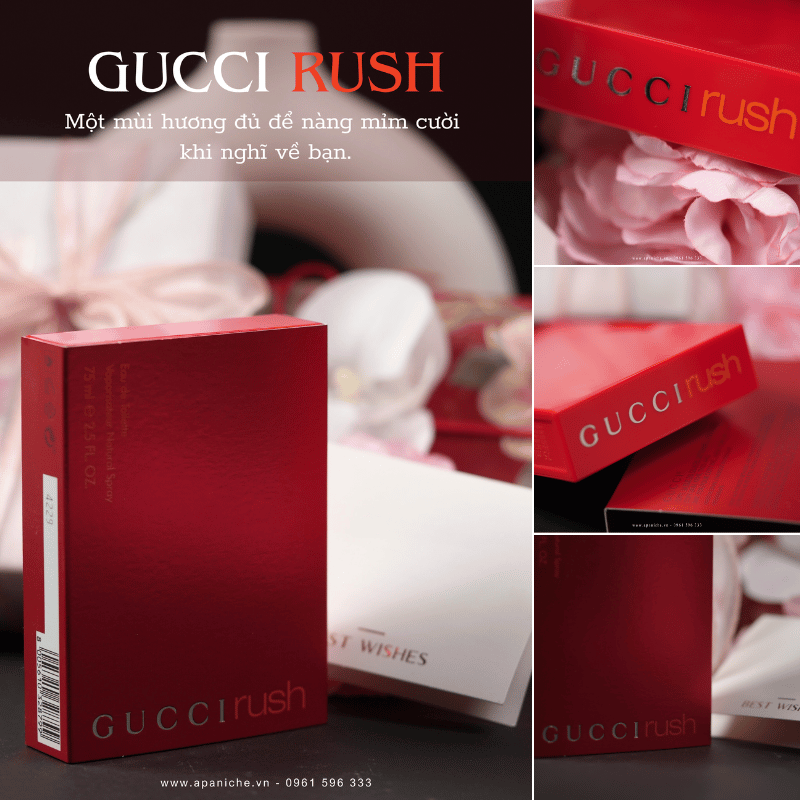 Gucci Rush by Gucci là hương thơm Chypre Fruity dành cho phụ nữ. Gucci Rush EDT được ra mắt vào năm 1999. Một thành phẩm sáng tạo của Michel Almairac – một danh tiếng trong ngành nghề hương thơm. Tên gọi “Rush” mang một ý nghĩa sâu sắc, khơi gợi sự nồng nàn quyến rũ và mê hoặc. Đây như là một ly cocktail độc đáo, nơi mà mỗi hương vị đều hòa quyện và lan tỏa một cách tinh tế và hài hòa.
