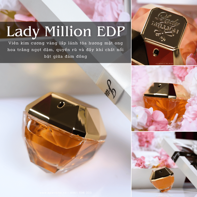 Nối tiếp thành công rực rỡ của phiên bản dành cho nam của dòng sản phẩm One Million, Paco Rabanne đã cho ra đời chai nước hoa Lady Million EDP dành riêng cho phái đẹp. Chai nước hoa được ra mắt năm 2012 bởi ba nhà pha chế Anne Flipo, Béatrice Piquet và Dominique Ropion. Paco Rabanne Lady Million EDP mang đến một sự hòa quyện độc đáo của hương hoa và hương trái cây. Cho đến nay chai nước hoa nữ này vẫn tạo được độ hot nhờ vào thiết kế và mùi hương đẳng cấp của mình.