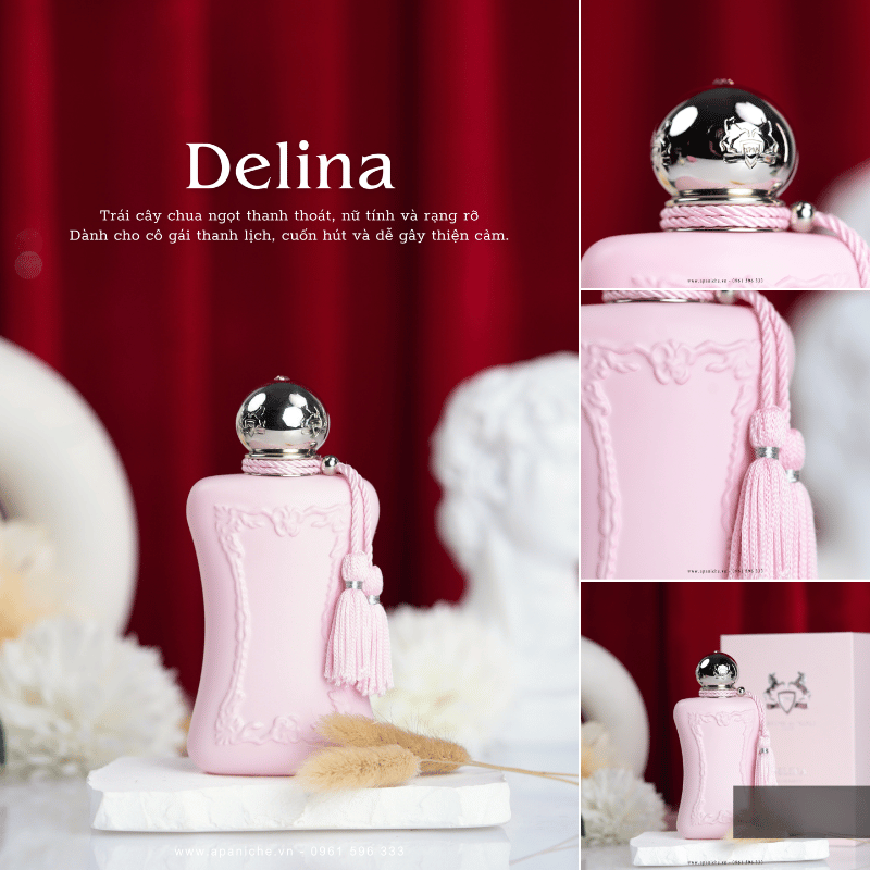Parfums de Marly Delina EDP toát lên vẻ nữ tính và tiểu thư với hương hoa hồng chủ đạo, cùng hương đại hoàng, cùng quả vải rất ngọt ngào, tươi tắn và nhẹ nhàng. Đây là lựa chọn hoàn hảo cho những người phụ nữ trẻ trung, yêu thích sự thanh lịch và dịu dàng, phù hợp cho cả ngày làm việc lẫn những dịp đặc biệt.