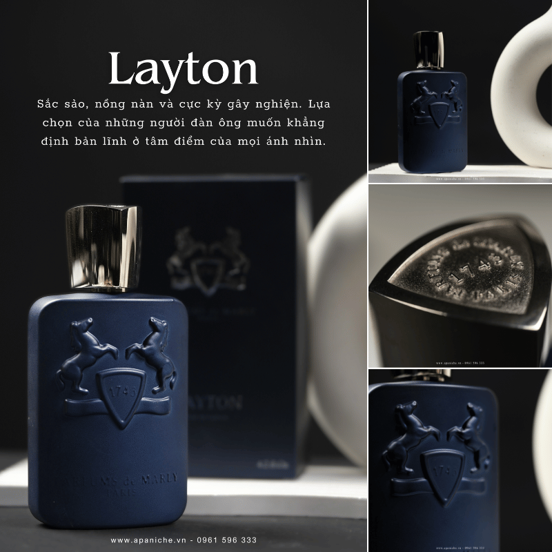 Nước hoa Parfums de Marly Layton EDP mang đến một hương thơm tinh tế và phong phú nhờ vào sự kết hợp độc đáo của các thành phần hương liệu. Đây là một hương thơm dễ dàng tạo cảm hứng bùng nổ với khung cảnh nhộn nhịp, đầy màu sắc của Hoàng gia thế kỉ XVIII. Ngày nay, Layton vẫn là một sản phẩm đượ săn đón bởi giá trị mà nó mang lại là vô cùng lớn.