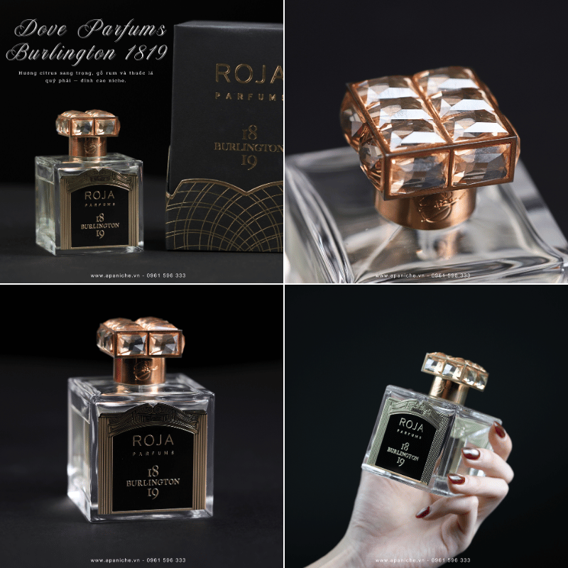 Roja Dove, người sáng lập Roja Parfums, là một nhà nước hoa được kính trọng toàn cầu. Sản phẩm của ông, đặc biệt là tại Harrods, được coi là thành công lịch sử. Roja Dove nổi tiếng với việc chỉ sử dụng những thành phần tốt nhất trên thế giới. The New York Times mô tả ông là “bậc thầy chuyên nghiệp của mùi hương”. Financial Times đánh giá ông là “nhân vật huyền thoại trong thế giới nước hoa”. Roja Dove Parfums Burlington 1819 được coi là một tác phẩm nghệ thuật vượt ra ngoài giới hạn của Roja Dove. Được giới thiệu vào năm 2020, đây là một trong những sản phẩm nổi bật nhất của thương hiệu. Nước hoa ra mắt tại cửa hàng cao cấp nhất của hãng tại Burlington, London.