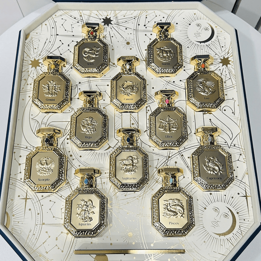 Bộ sản phẩm gồm 12 chai – 12 mùi hương – biểu tượng của 12 cung hoàng đạo, được tạo nên bởi nhiều nhà điều hương danh tiếng từ các tập đoàn hương liệu lớn như IFF, Givaudan, Robertet…