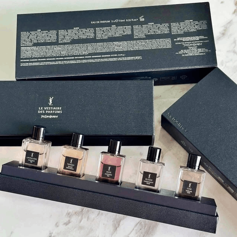 Set Yves Saint Laurent Le Vestiaire Des Parfums 5 mini (Cuir, Blouse, Muse, Tuxedo, Lavalliere) x 7.5ml