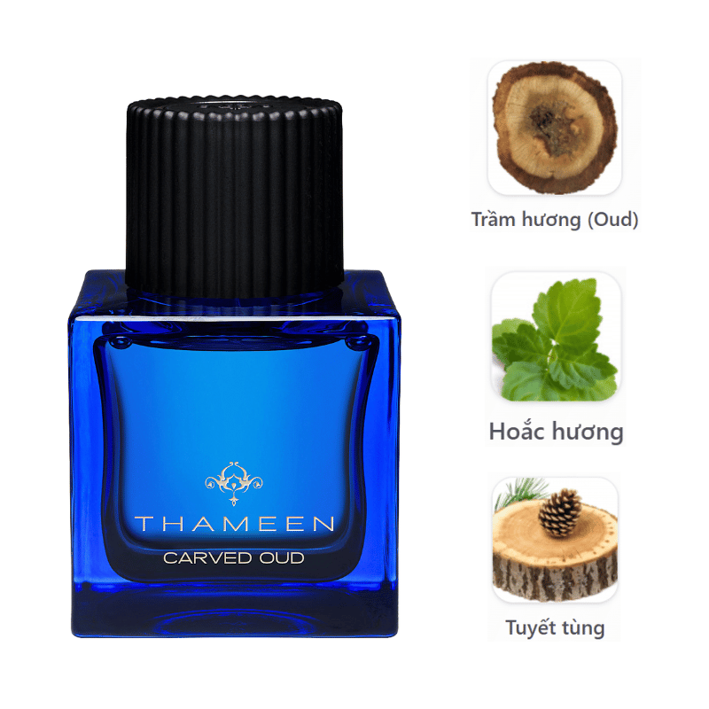 Trong thế giới nước hoa cao cấp, Thameen London được biết đến với cách tiếp cận rất riêng: lấy cảm hứng từ những viên đá quý hoàng gia và chuyển hóa chúng thành những mùi hương có chiều sâu, sang trọng và bền bỉ theo thời gian. Carved Oud là một trong những sáng tạo tiêu biểu nhất của thương hiệu, thể hiện rõ tinh thần oud kiểu châu Âu – tinh tế, tiết chế và được kiểm soát chặt chẽ. Mùi hương này ra mắt năm 2013 và nhanh chóng được yêu thích nhờ cách xử lý trầm hương mượt mà, khô ráo, dễ dùng hơn nhiều mùi oud truyền thống, nhưng vẫn giữ được chiều sâu và cá tính riêng.