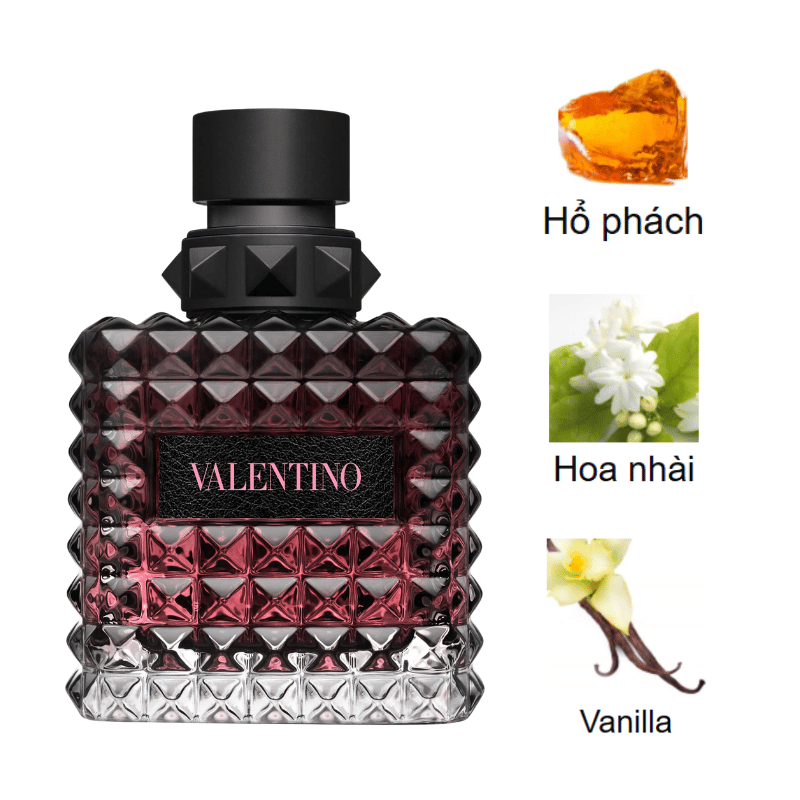 Lấy cảm hứng từ Rome khi màn đêm buông xuống, Valentino Donna Born In Roma Intense là phiên bản mang tinh thần táo bạo và sâu sắc hơn so với bản Born In Roma nguyên bản. Mùi hương tập trung khai thác vẻ đẹp của vani theo hướng trưởng thành, kết hợp hoa trắng và nhựa thơm để tạo nên cảm giác ấm áp, bao phủ và đầy cuốn hút. Được cho ra mắt vào năm 2023, dưới bàn tay sáng tạo của Amandine Clerc-Marie và Honorine Blanc, dành cho hình ảnh người phụ nữ hiện đại, tự tin và không ngại thể hiện sức hút của mình.